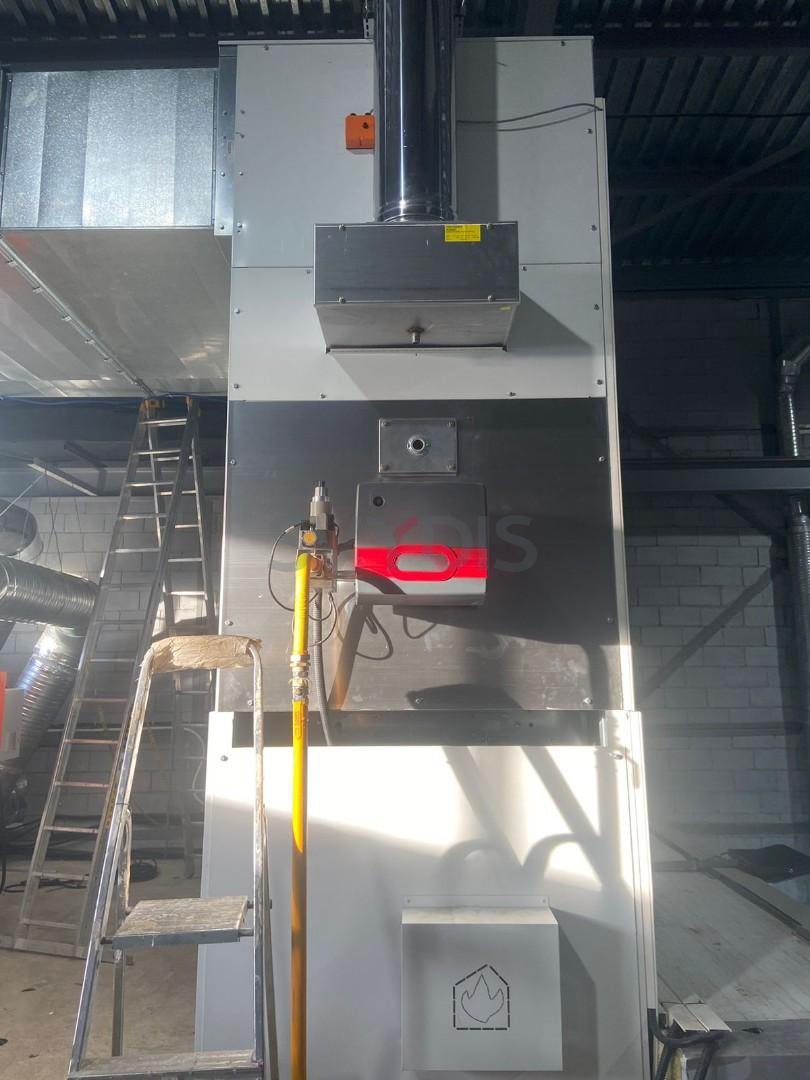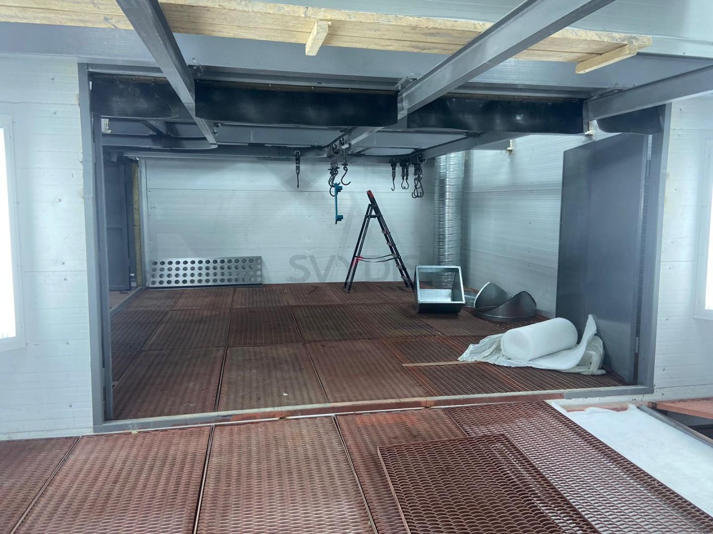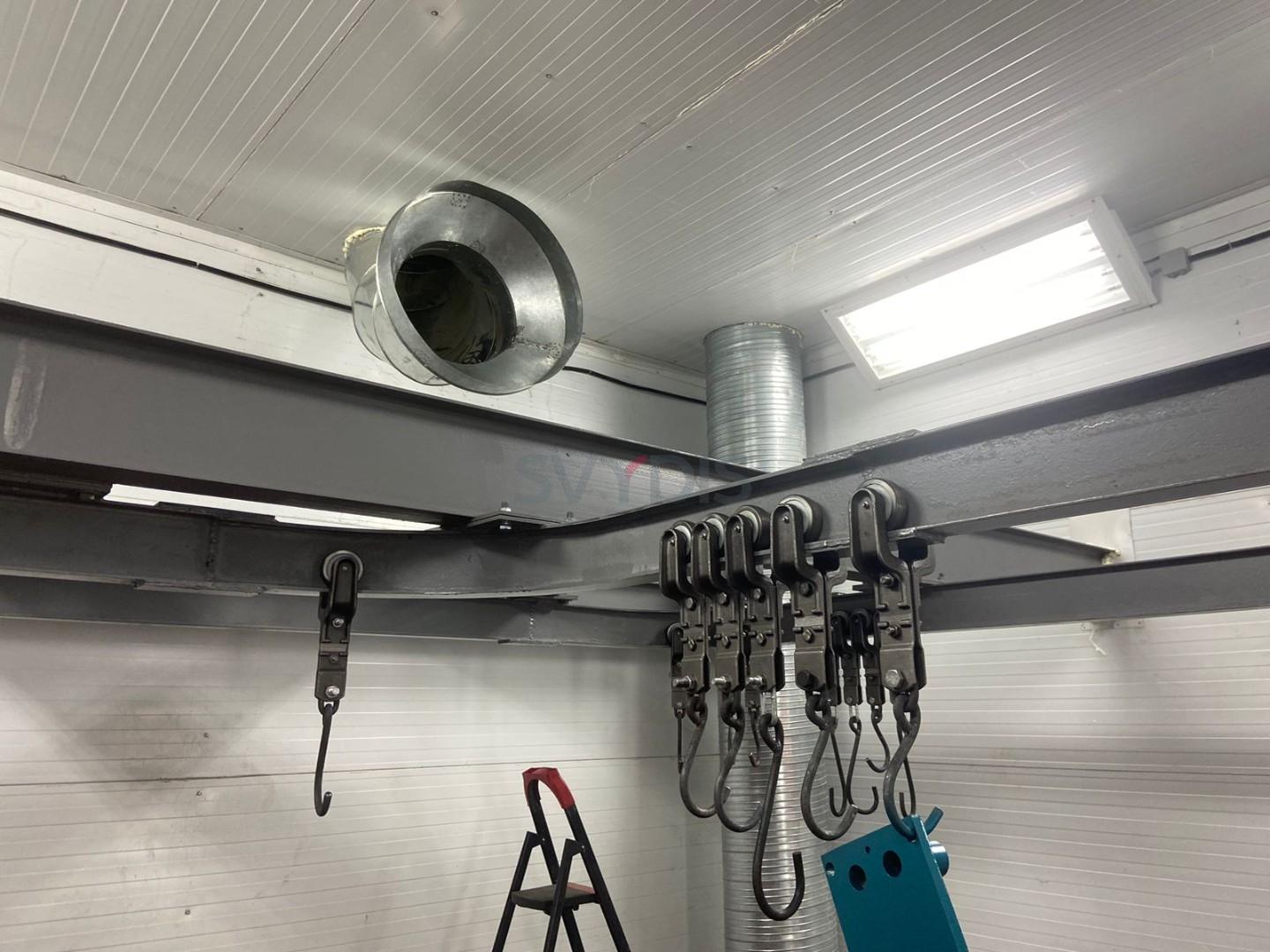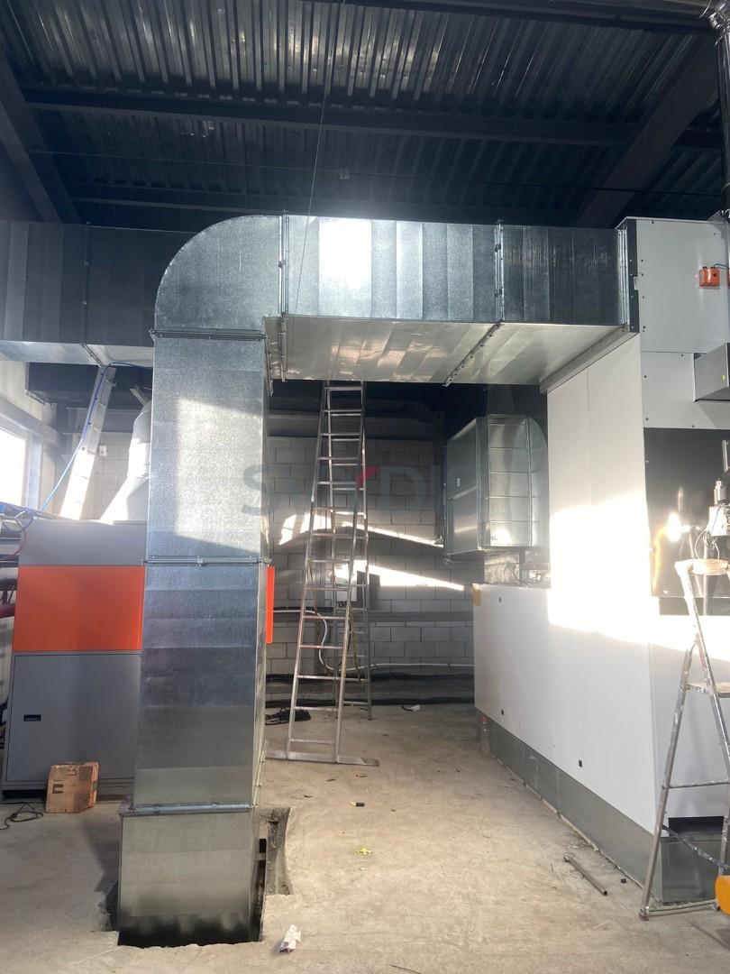 Ierobežotās vietas dēļ klienta darbnīcā gaisa apstrādes iekārta atrodas virs krāsošanas un žāvēšanas kabīnes otrā stāva griestos.