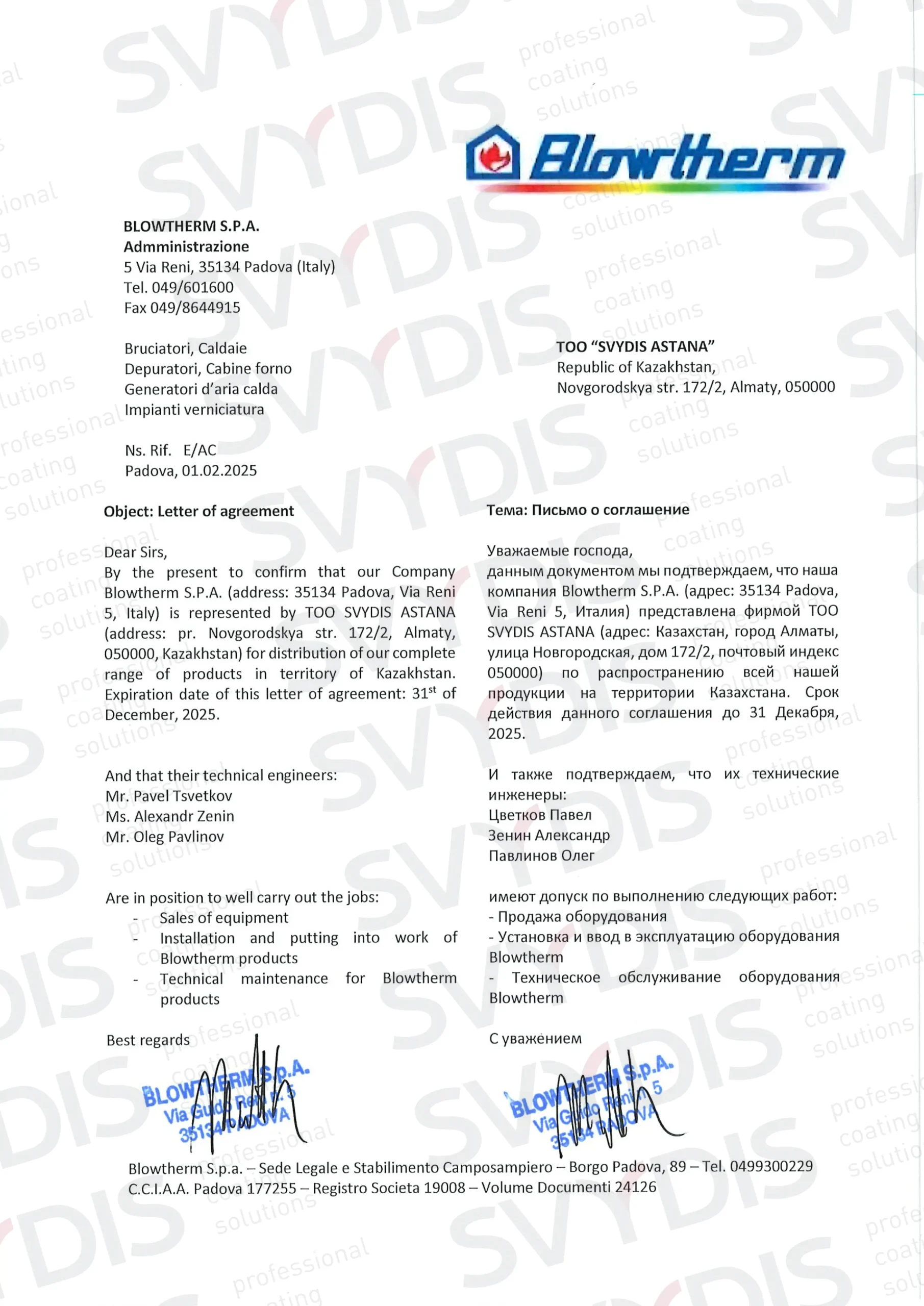 Turklāt mūsu uzņēmums ir oficiālais Blowtherm pārstāvis Kazahstānā. To apliecina oficiālais ražotāja dokuments, kas sniedz mūsu klientiem pārliecību par produkta oriģinalitāti, tehnisko atbalstu un profesionālo apkalpošanu.